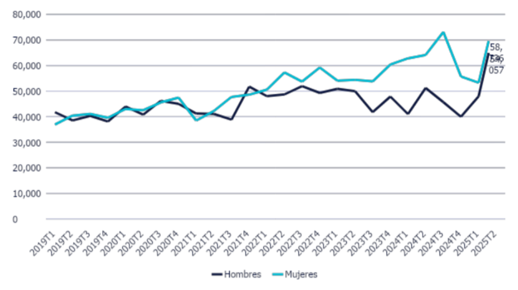 En el segundo trimestre de 2025, el peso del empleo masculino en la industria aumentó con un alza interanual del 5,5%, mientras que el femenino se desplomó un 8,5%.